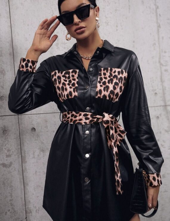 Ivy Lane Tied Leopard Snap Down Trench Coat
