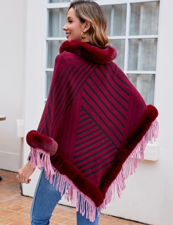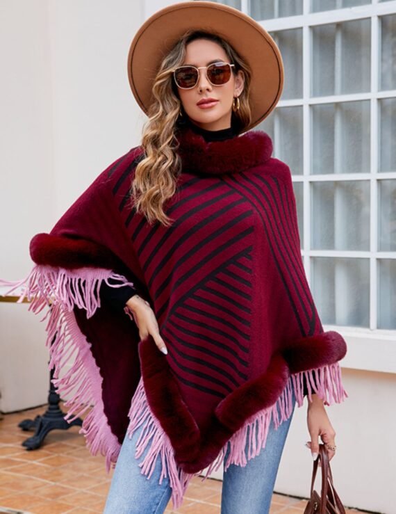 Striped Fringe Hem Poncho